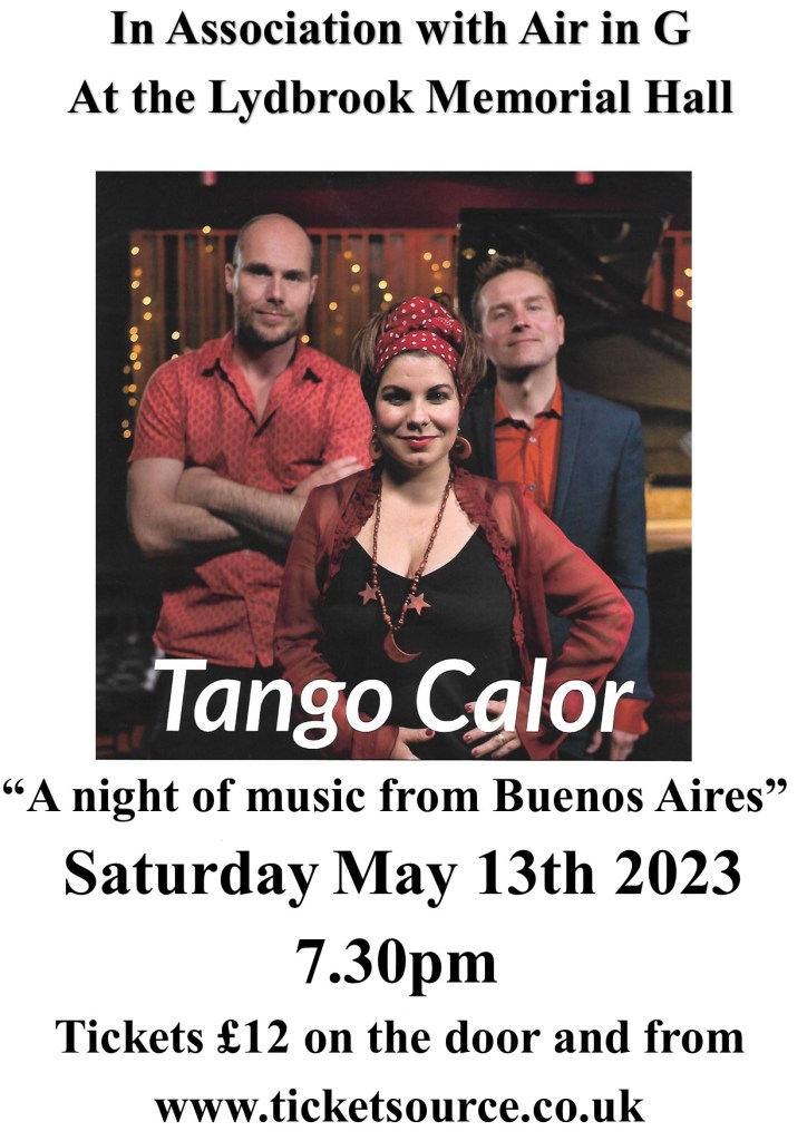 Tango Calor Saturday May 13th 2023 at 7.30pm Share this: Share on WhatsApp (Opens in new window) WhatsApp Share on Tumblr Email a link to a friend (Opens in new window) Email Share on Reddit (Opens in new window) Reddit Print (Opens in new window) Print MoreTweetLike Loading...